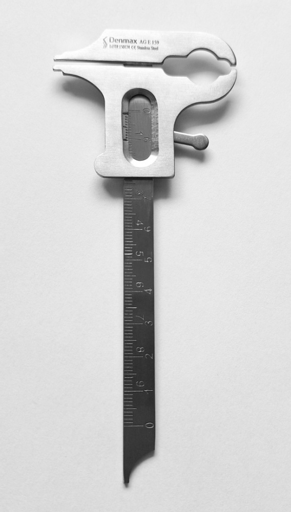 Grubościomierz Boley do wosku i metalu. Przedział miarki 0-100 mm.