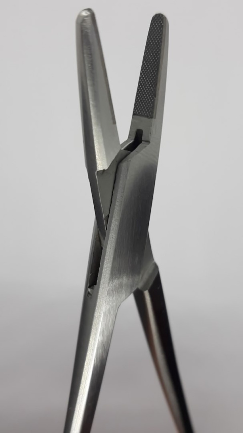 Igłotrzymacz służy do trzymania igły w czasie szycia chirurgicznego. Imadło ma dzioby z kratkowanymi nacięciami, ramiona sprężynujące oraz zamek zatrzaskowy. Dodatkowo wkładka utwardzana węglikiem spiekanym.
