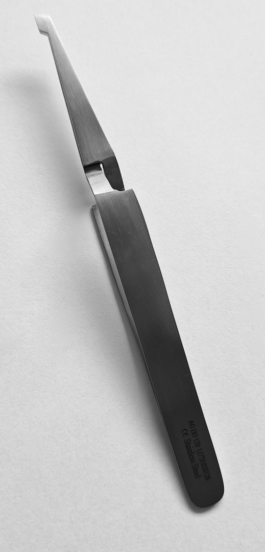 Pęseta do zakładania zamków o długości 13 cm.
