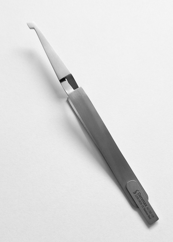 Pęseta sprężysta posiadająca mocny i pewny chwyt. Pozycjoner na końcu pozwala na dokładne ustawienie zamka. 17 cm